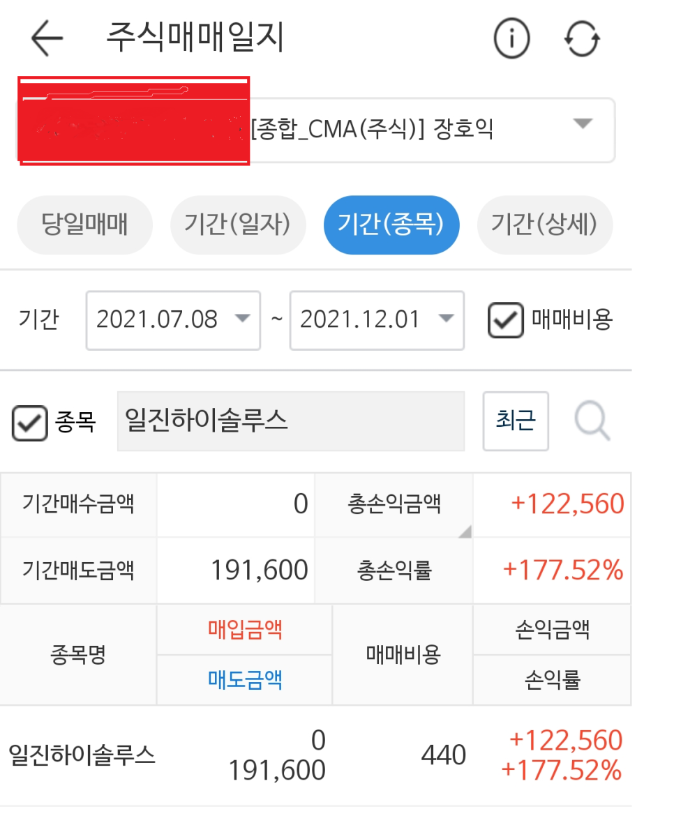일진하이솔루스 2주 매도 191,600원 -> 순수익 122,560원