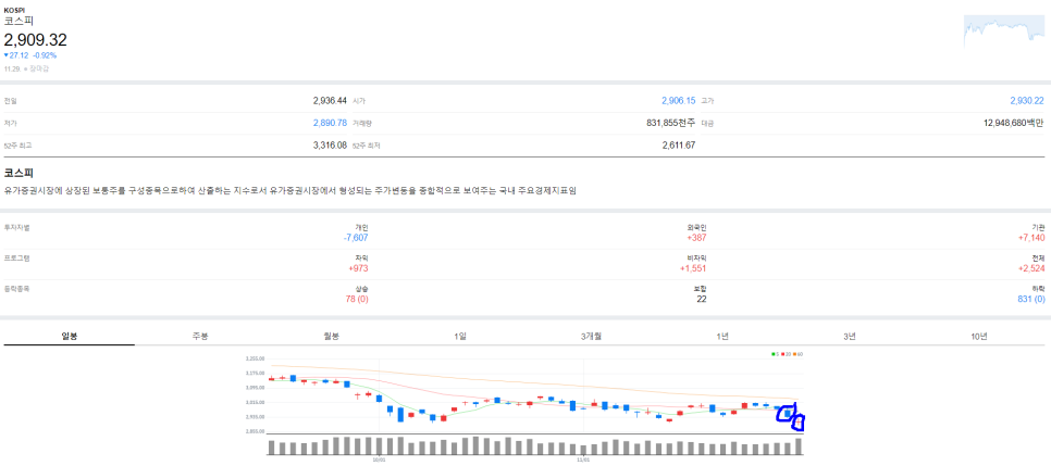 한국 증시또한 저번주 금요일을 시작으로 계속해서 빠지고 있습니다.
