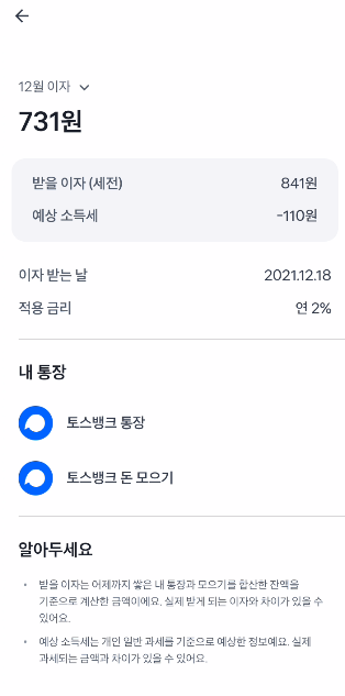 토스뱅크 이자 지급 후기