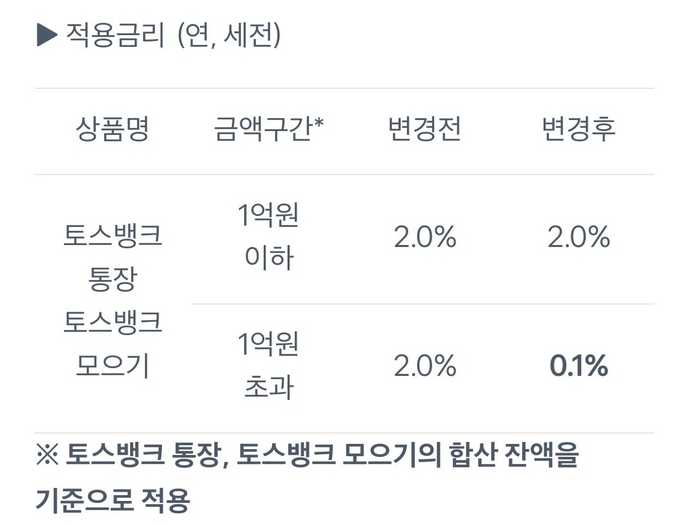 토스뱅크는 1억까지는 연 2% (세전 2%)