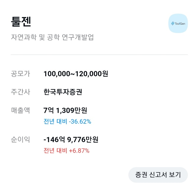 ㄴ 저는 청약을 보류 할 것 같습니다. 이미 코스넥 시장에 상장돼어있고 금액이 134,000원인데