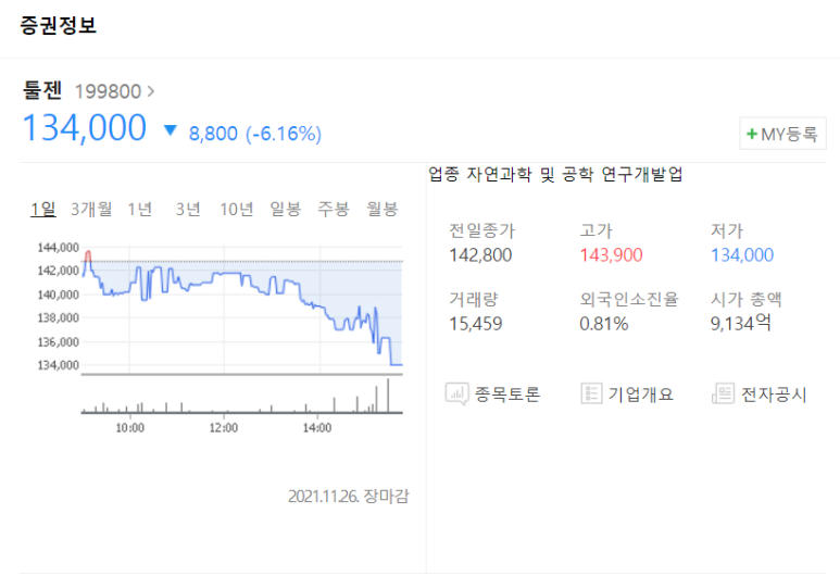 툴젠은 보시다 시피 이미 코스넥 시장에 상장 되어 있습니다.